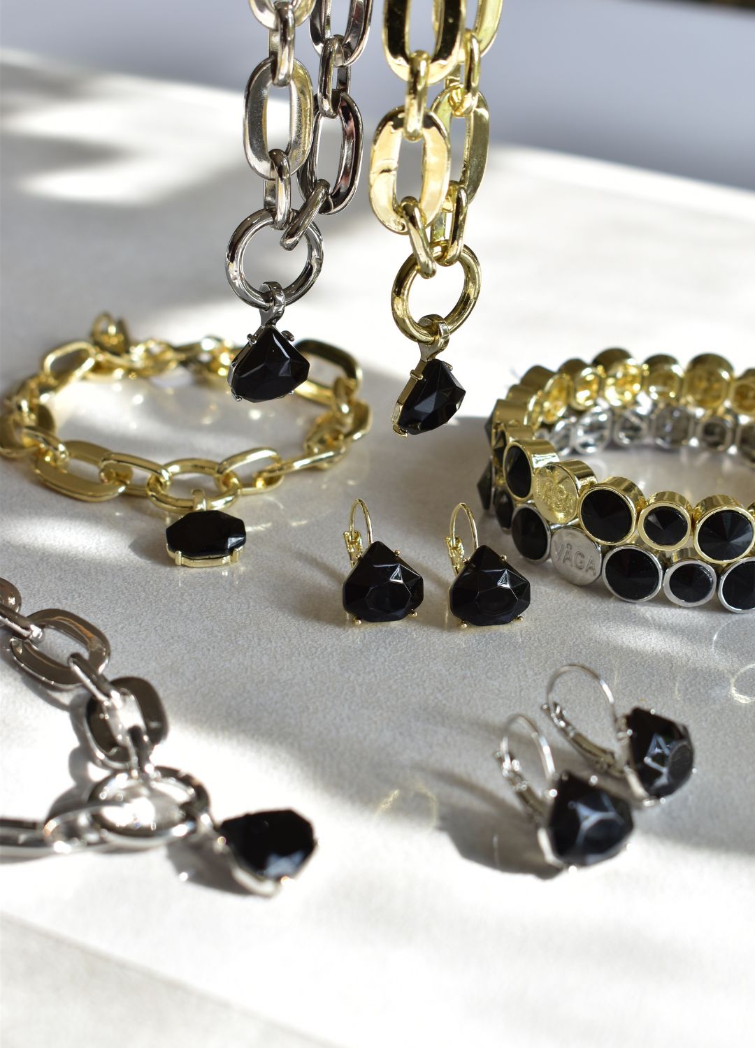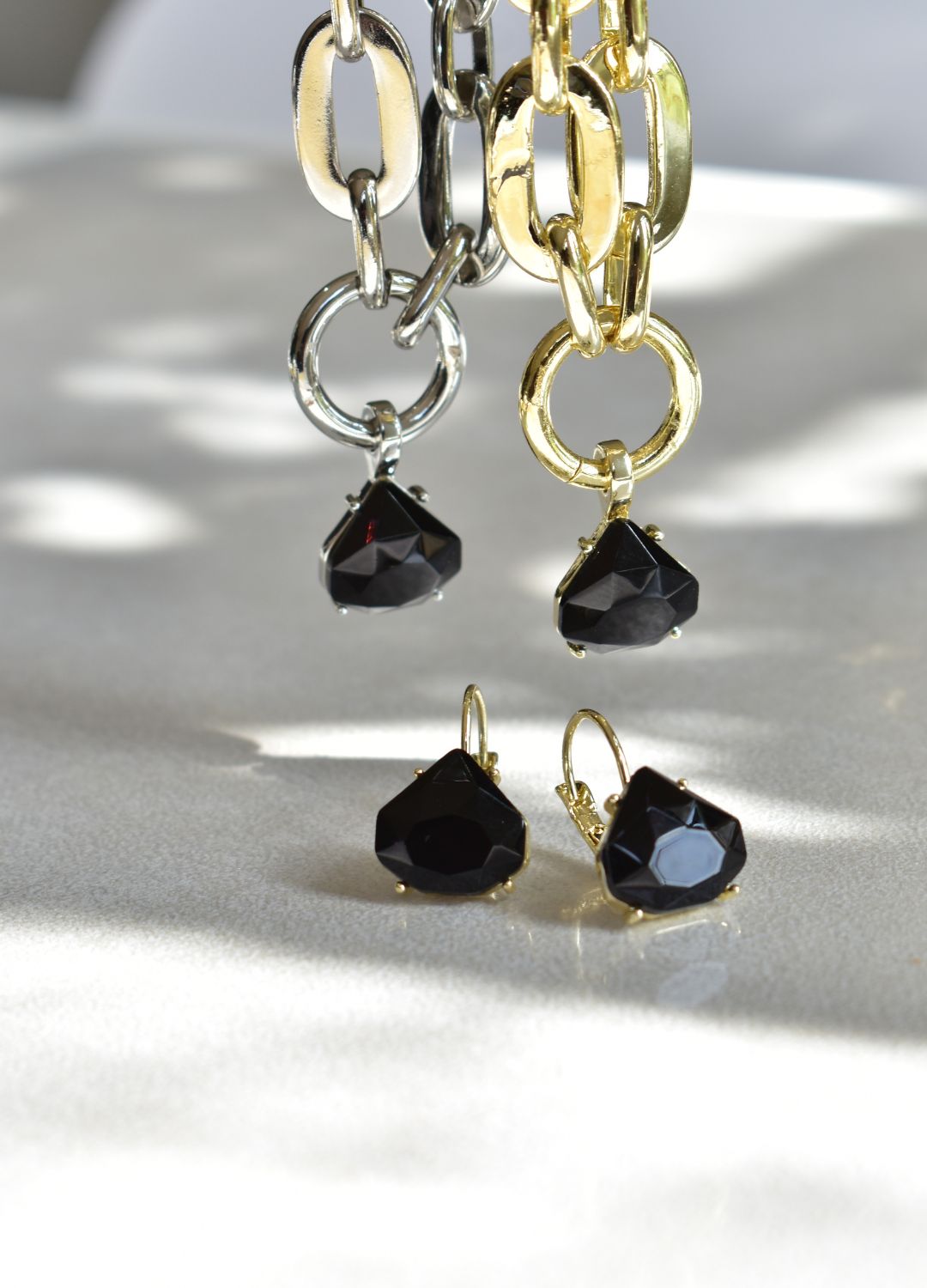 Ava earrings with diamond-shaped cut black crystal elevate any outfit. You don’t want to be without these.
