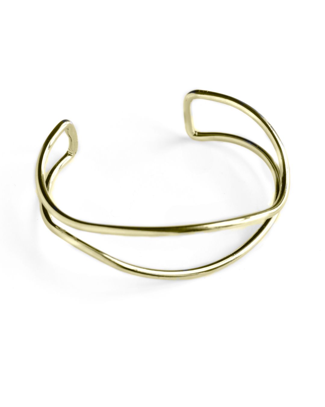Bangle i stål, pläterad med äkta guld,  med öppen form och blank finish. Ett armband i rostfritt stål med ren och markerad silhuett.