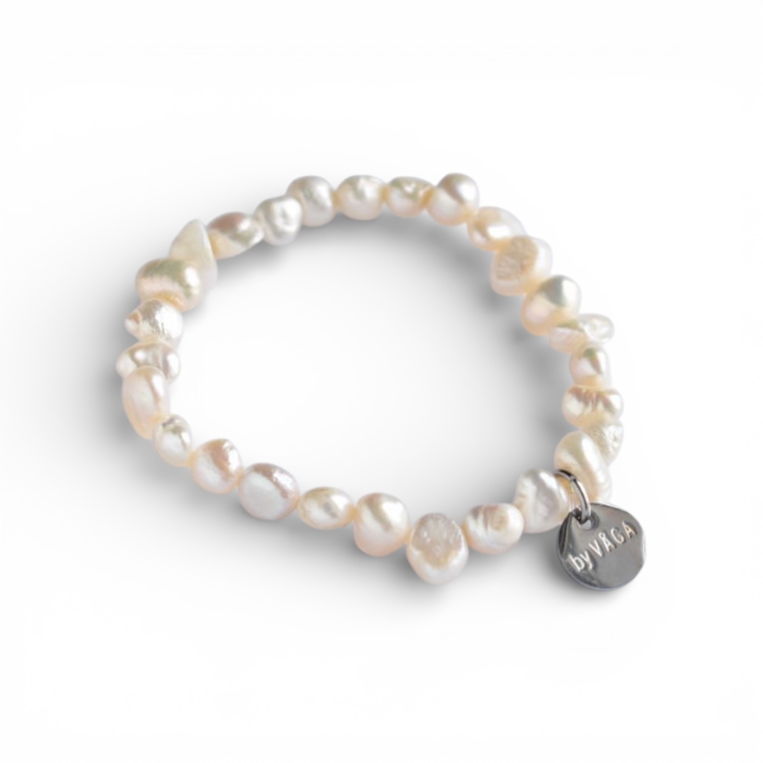 Armband med sötvattenspärlor på resår. Oregelbundna pärlor ger ett levande uttryck och en mjuk, naturlig lyster.
