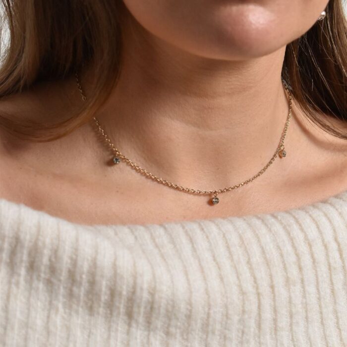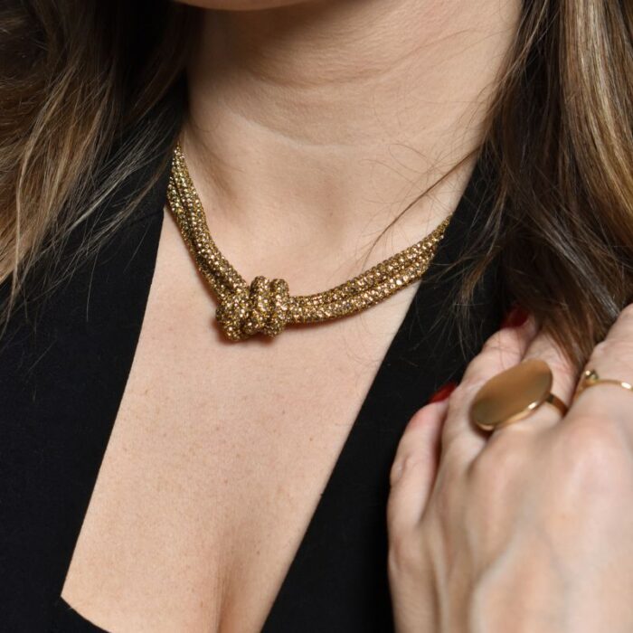 Halsbanden kännetecknas av en kombination av feminin elegans, coola och lyxiga detaljer samt hållbara material. Varje smycke har rena linjer och oväntade materialval, vilket ger en unik twist och personlig prägel till din outfit, oavsett tillfälle.